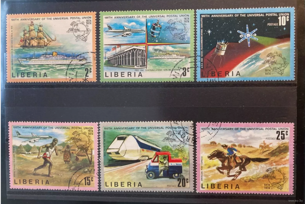 1974 либерия 100 лет впс авиация космос жд транспорт корабли