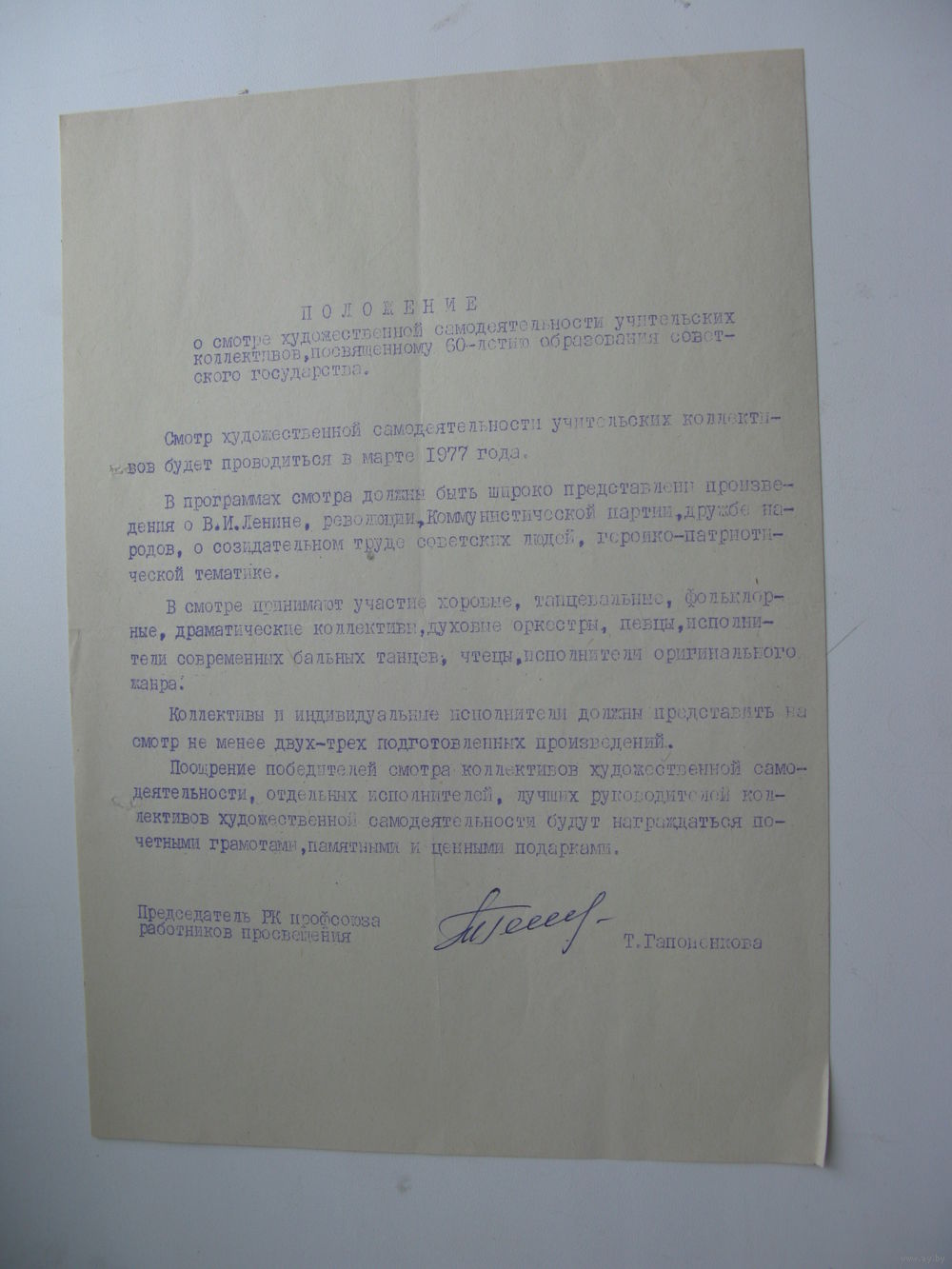 1977 г. Школа Положение о смотре художественной самодеятельности