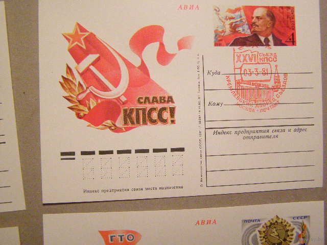 1981 Слава КПСС Ленин СГ 23/02/81 XXVI 26-й съезд КПСС ПК с ОМ ПК ОМ 92 СССР 1980 (С)