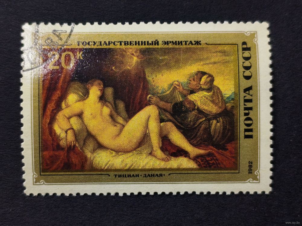 1982 СССР. Шедевры Государственного Эрмитажа. Итальянская живопись XV-XVI вв.Тициан (ок. 1476/77 или 1489/90 - 1576). "Даная"