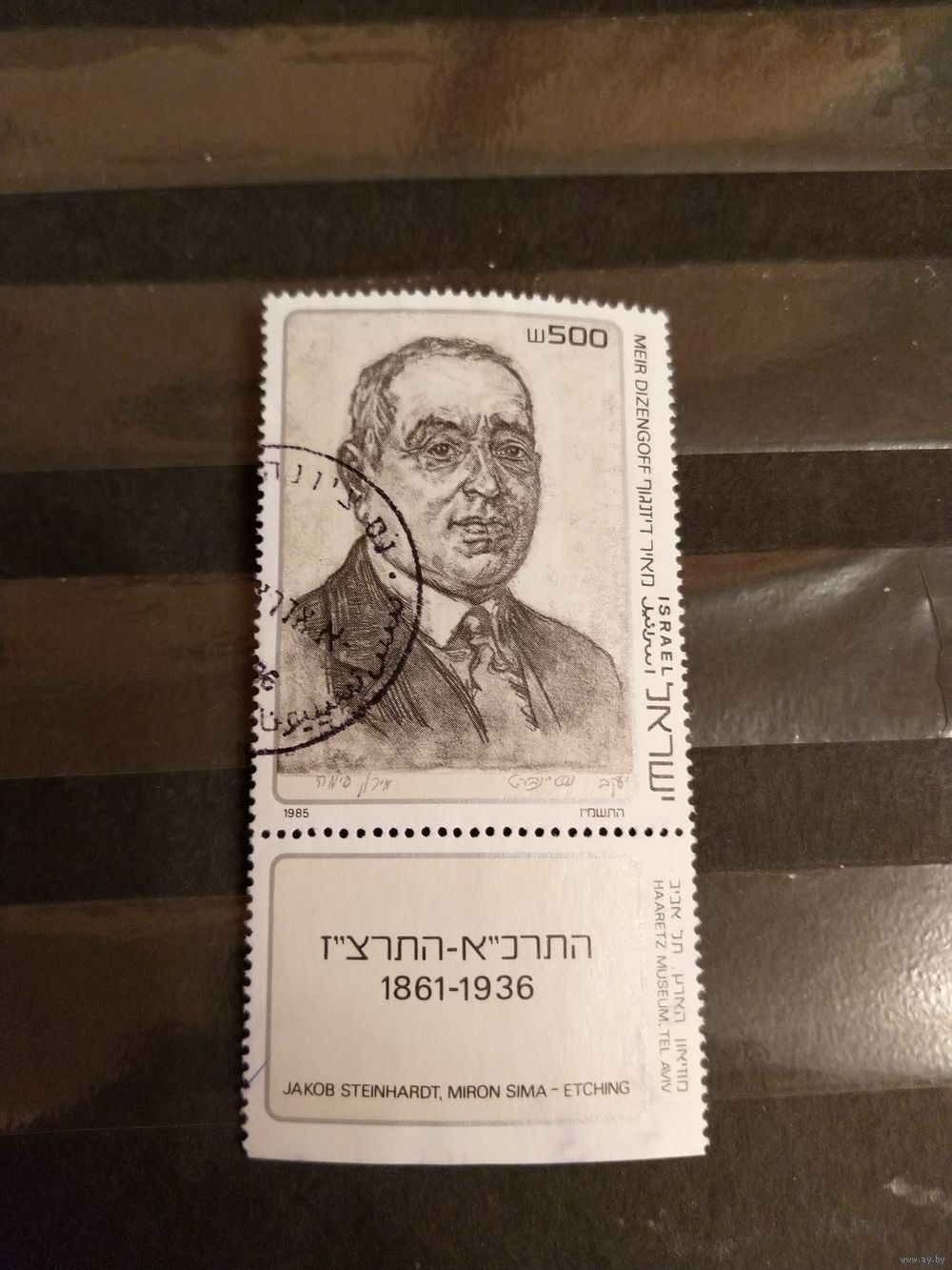 1985 Израиль Мих 1013 выпускалась одиночкой Мирон Яковлевич Дизенгоф сионистский деятель иудика (5-6)