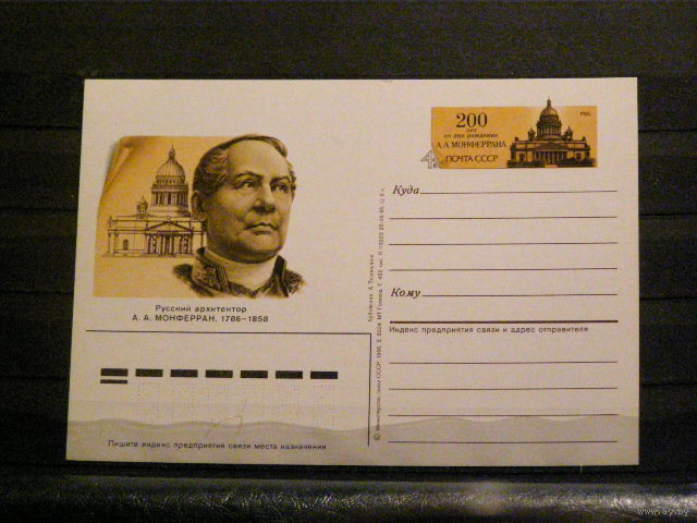 1985 СССР. Односторонняя почтовая карточка с ОМ. А.А.Монферран.