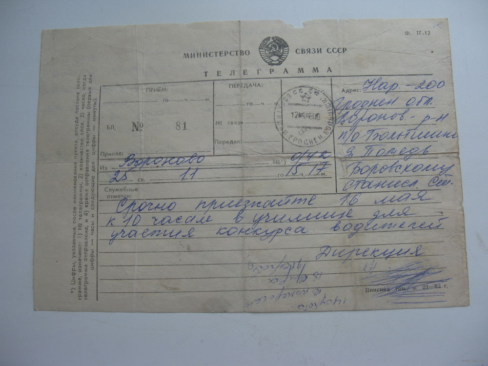 1986 г. Телеграмма