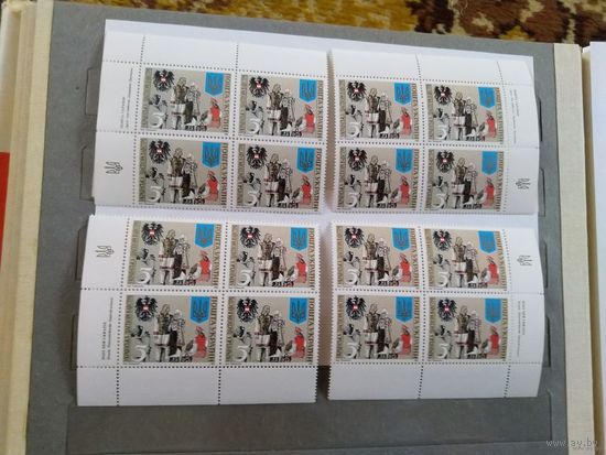 1992 Украина Мих 92 оценка 16 евро выпускалась одиночкой 16 марок с полями в квартблоках MNH** герб (у-6)