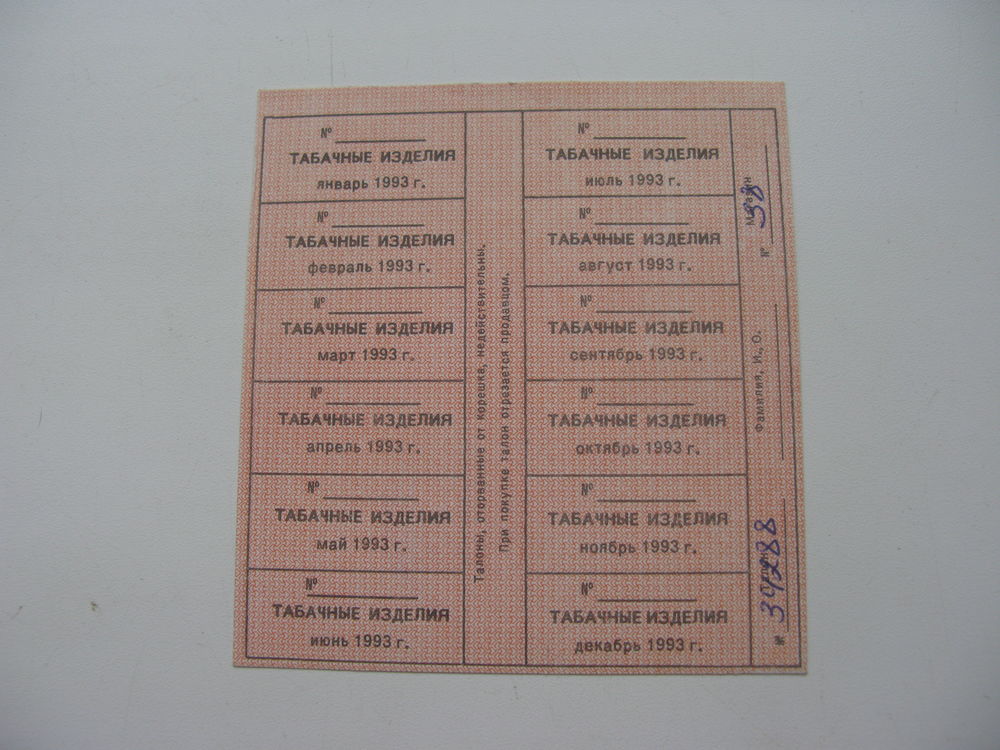 1993 г. Талоны на табачные изделия г. Гомель (состояние отличное )