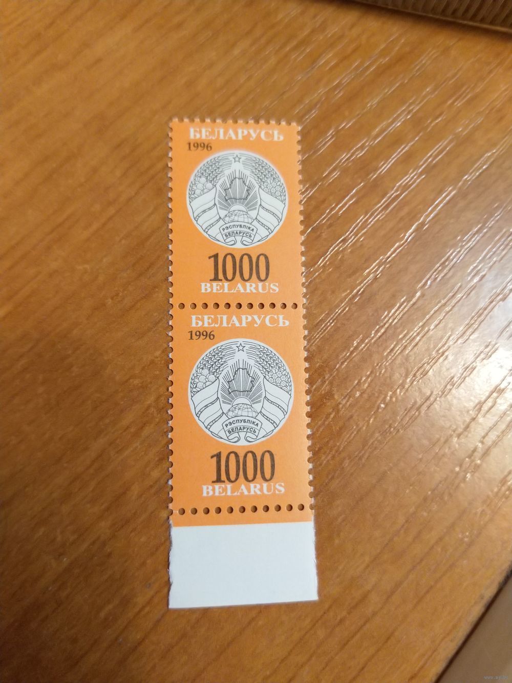 1996 Беларусь пара марок одна разновидность смазаная печать чистая MNH** герб (3-7)