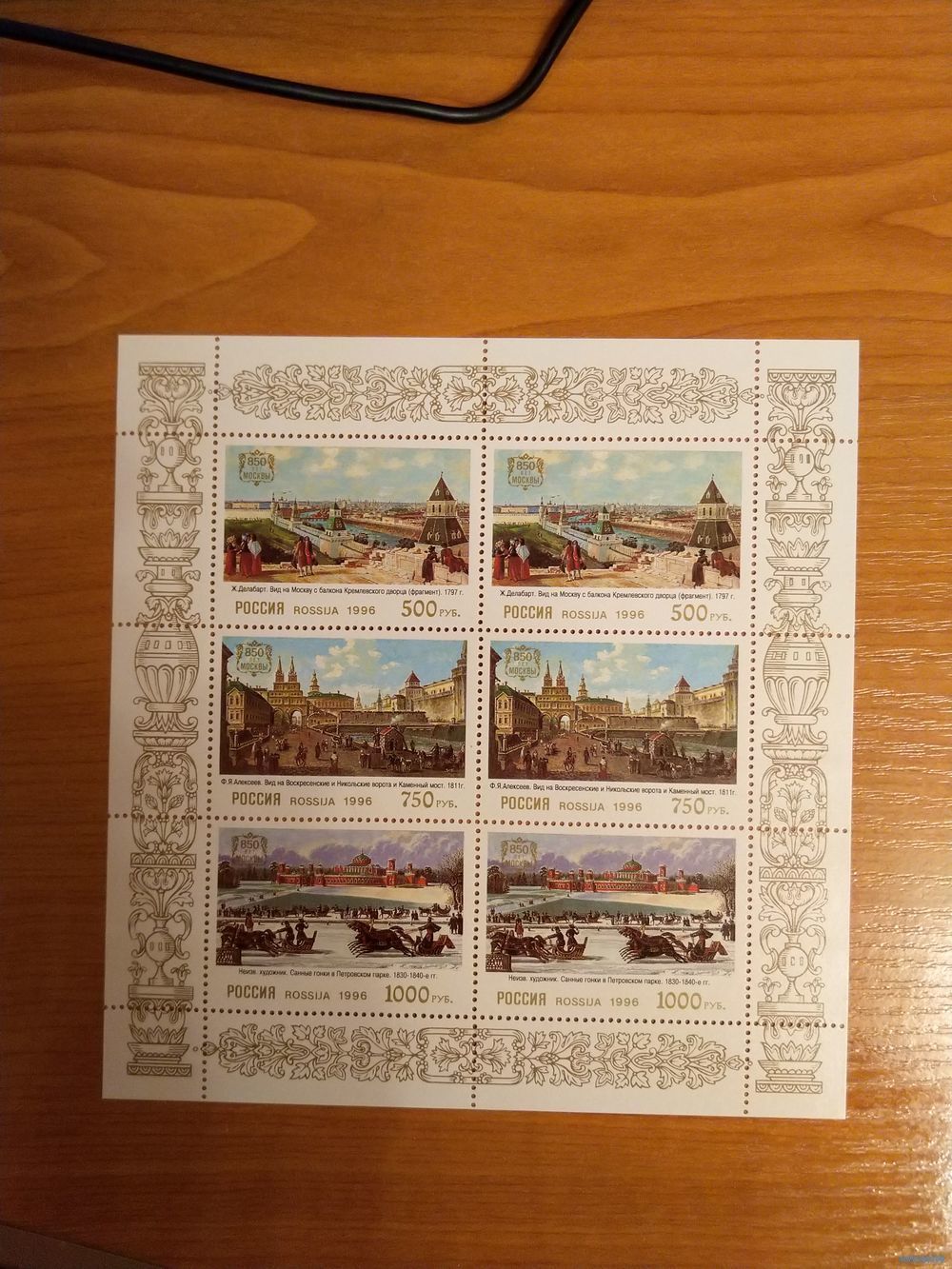 1996 Россия живопись виды Москвы 3 малых листа полный комплект в том числе с надпечаткой MNH** (p-13)