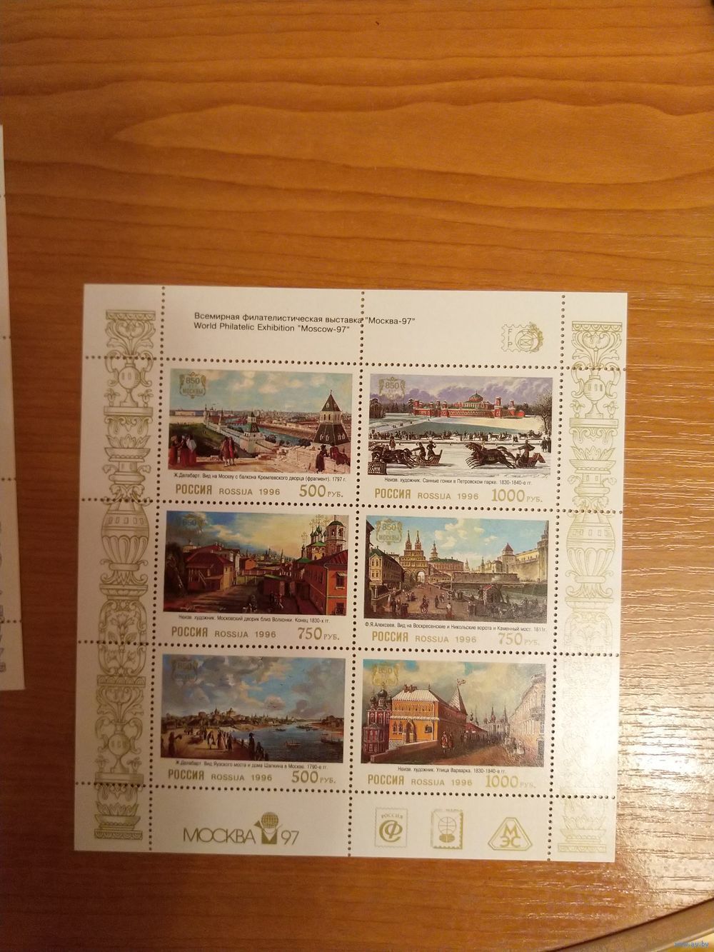 1996 Россия живопись виды Москвы 3 малых листа полный комплект в том числе с надпечаткой MNH** (p-13)