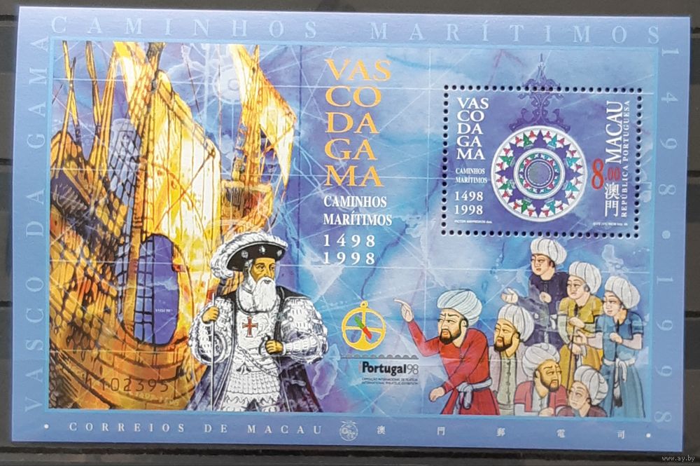1998 - 1998 500-летие путешествия Васко да Гама в Индию через Мыс Доброй Надежды - правильно датированный "1498-1998"Макао-Китай