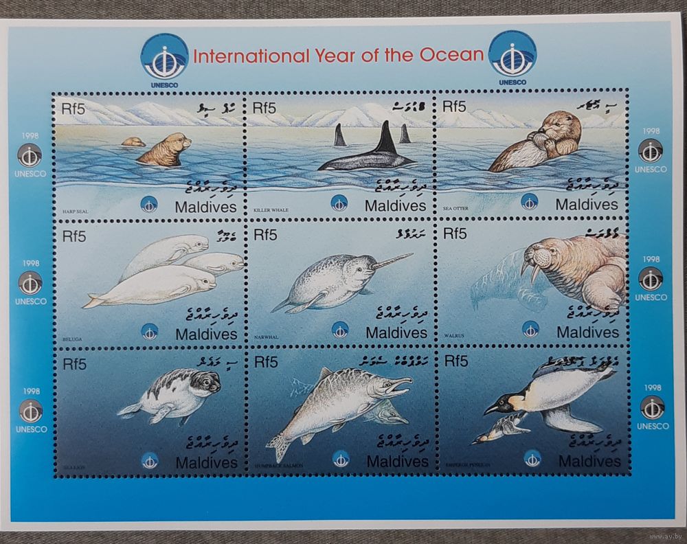 1999 Международный год океана( морские обитатели) Мальдивы