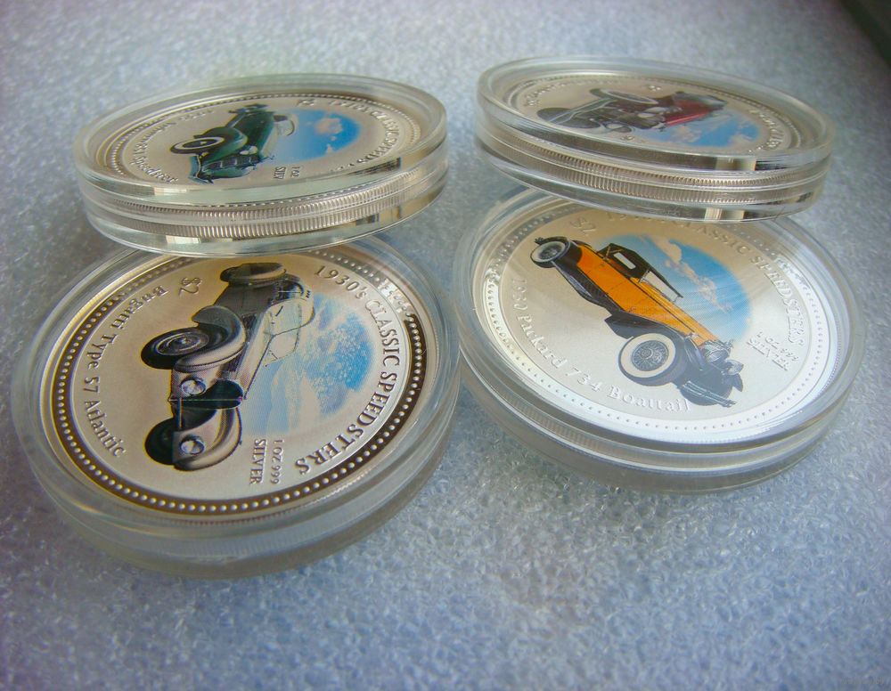 Серебро 999 пробы. Вес каждой монеты -1 унция.