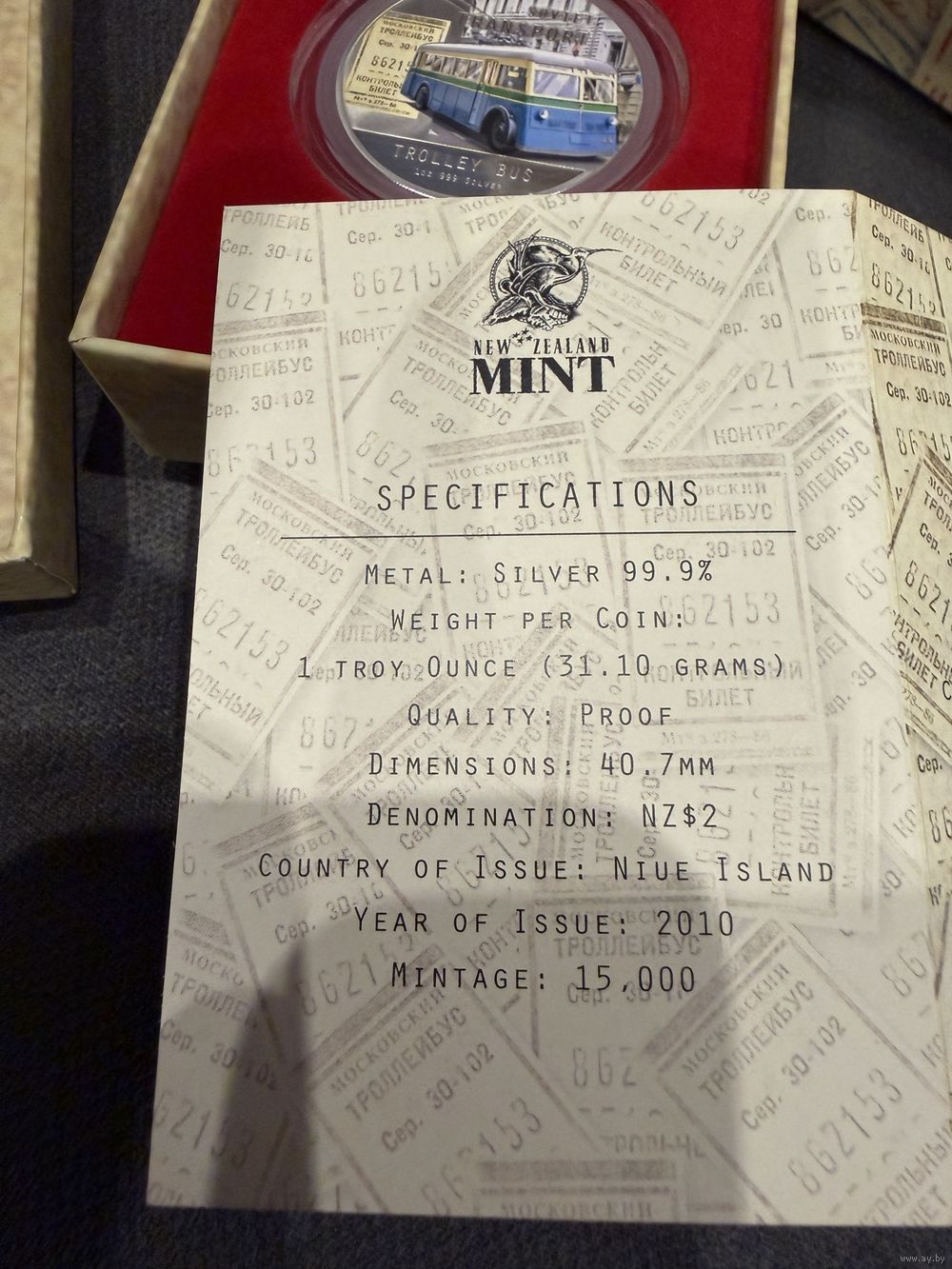 2 доллара 2010 г. Советский Тролейбус. УНЦОВКА СЕРЕБРО 999 пр. Распродажа коллекции!!!