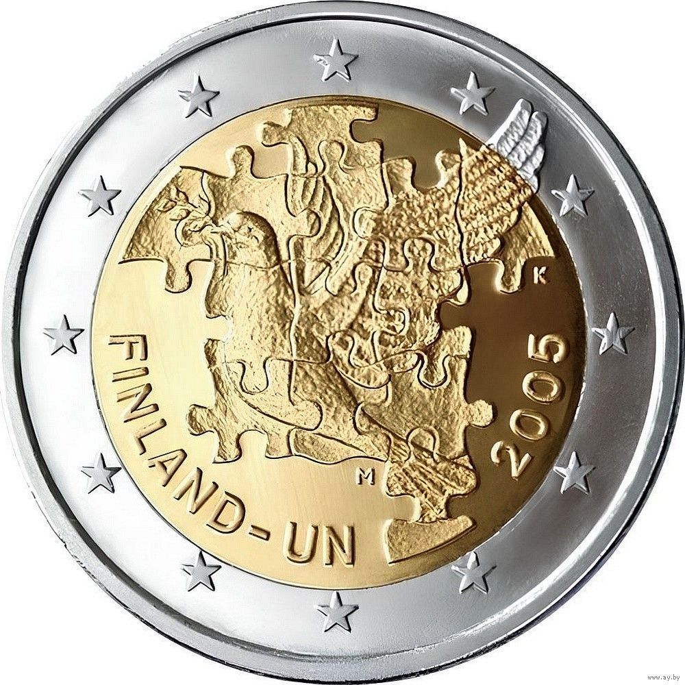 2 евро 2005 Финляндия 60 лет ООН UNC из ролла