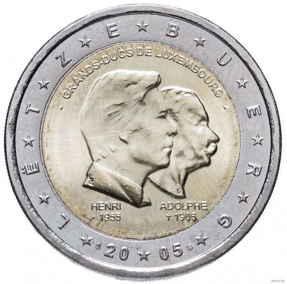 2 евро 2005 Люксембург Великие герцоги Генри и Адольф UNC из ролла
