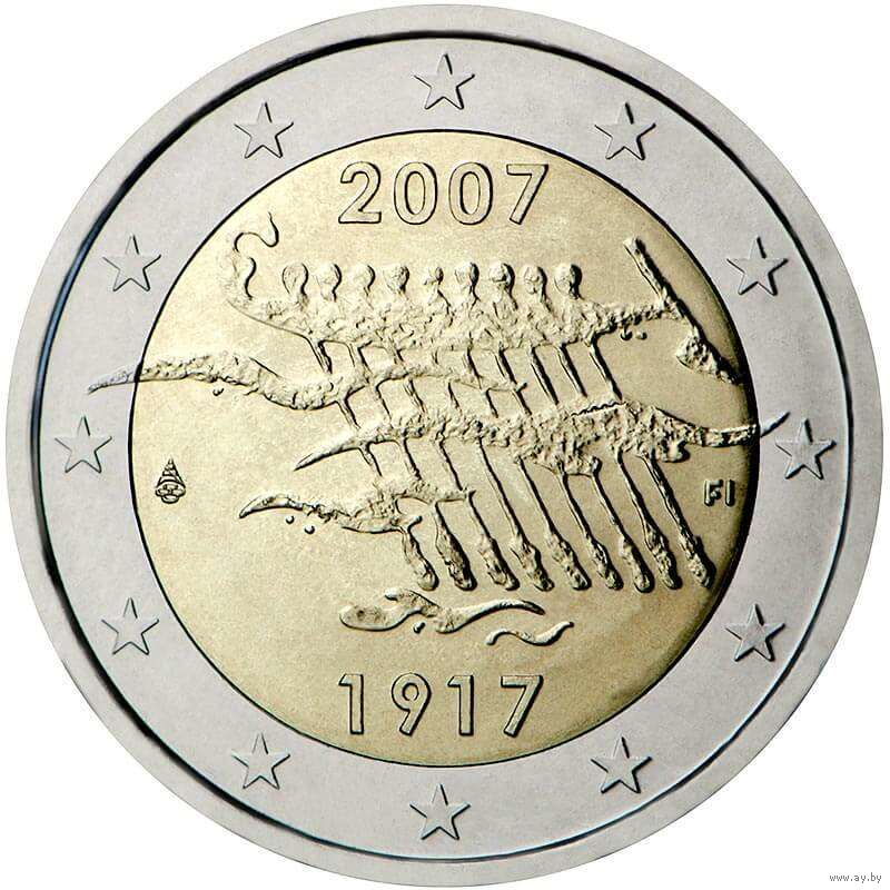 2 Евро 2007 Финляндия 90 лет Независимости UNC из ролла