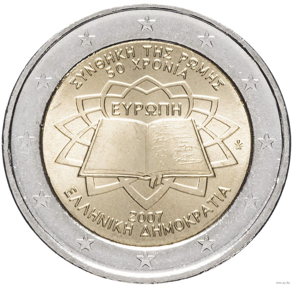 2 евро 2007 Греция 50 лет подписания Римского договора UNC из ролла