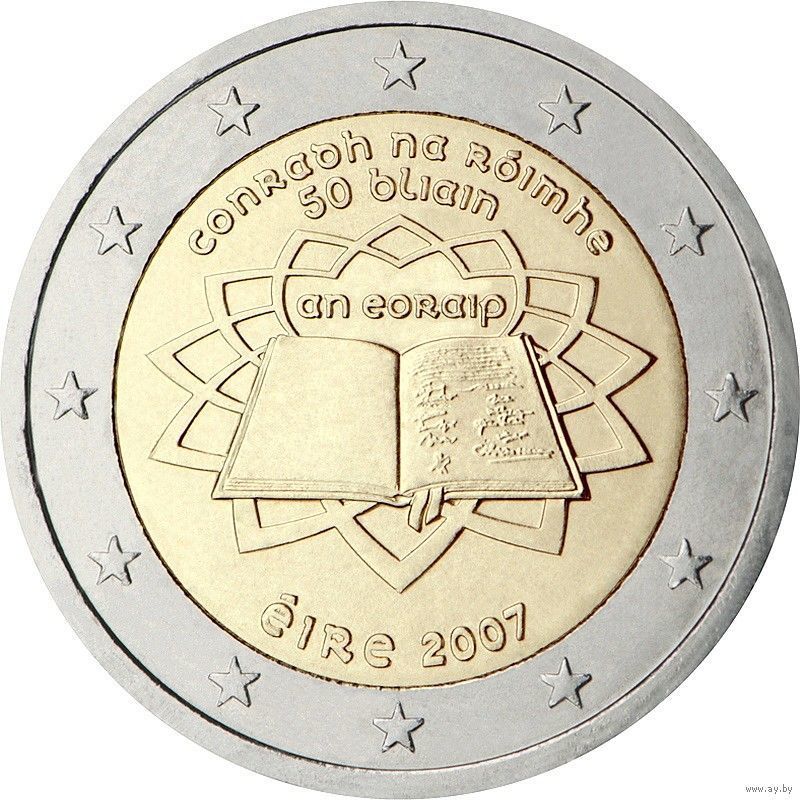 2 евро 2007 Ирландия 50 лет подписания Римского договора UNC из ролла