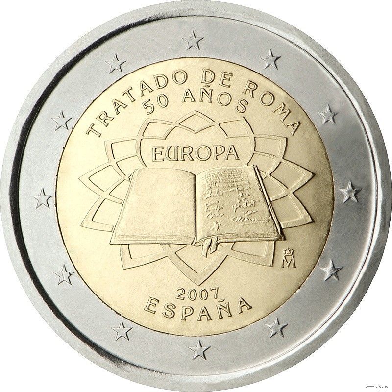 2 евро 2007 Испания 50 лет подписания Римского договора UNC из ролла