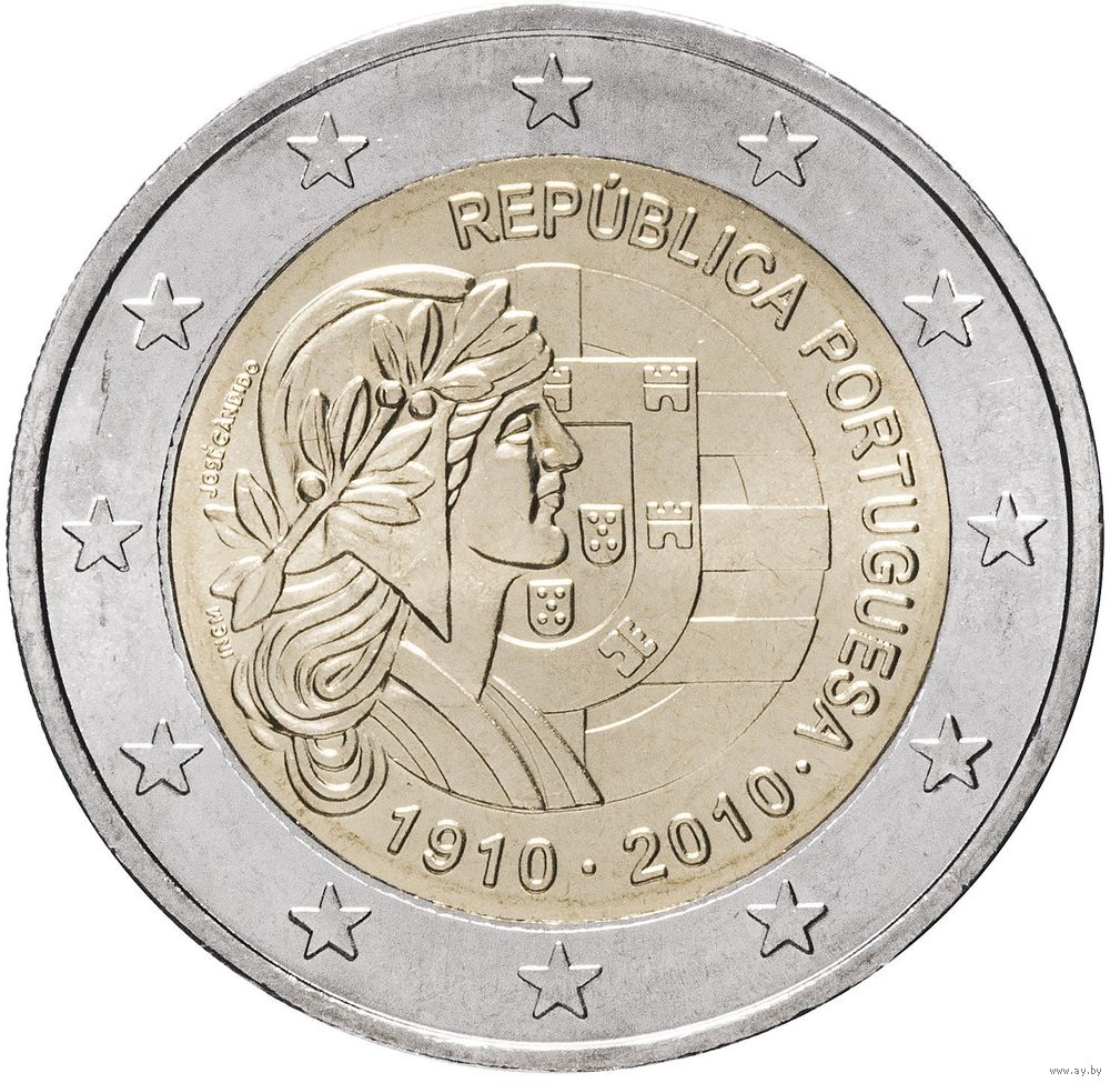 2 евро 2010 Португалия 100 лет Португальской республике UNC из ролла