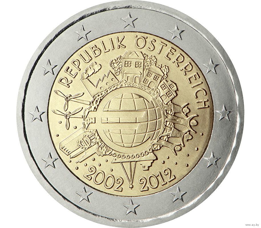 2 евро 2012 Австрия 10 лет наличному евро UNC из ролла