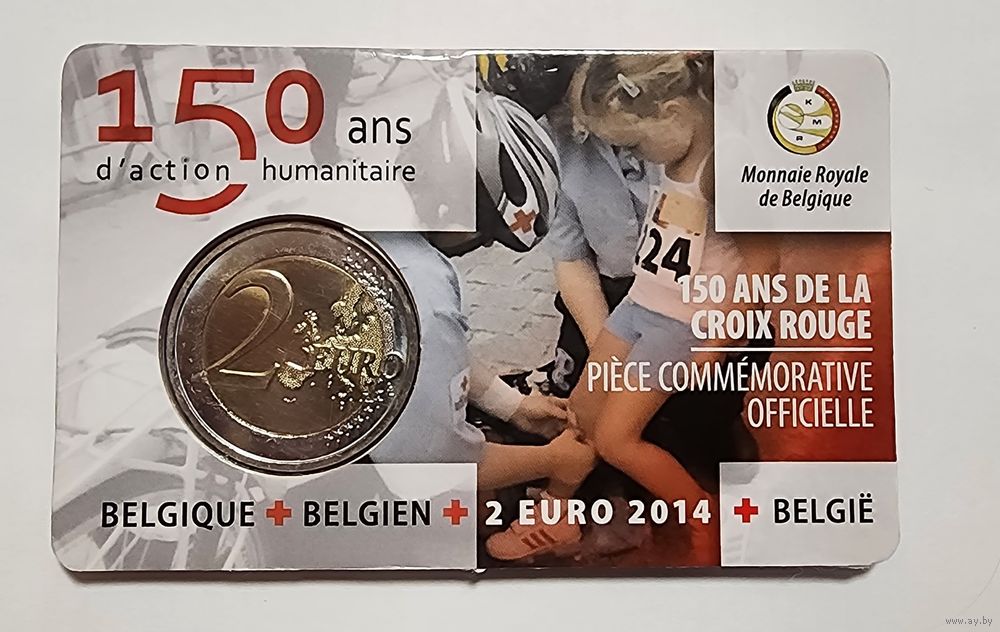 2 евро 2014 Бельгия 150 лет бельгийскому Красному кресту в блистере