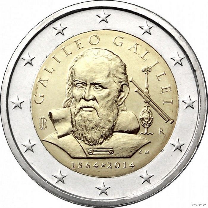 2 евро 2014 Италия Галилео Галилей UNC из ролла