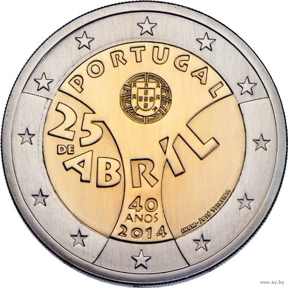 2 евро 2014 Португалия 40 лет Революции гвоздик UNC из ролла
