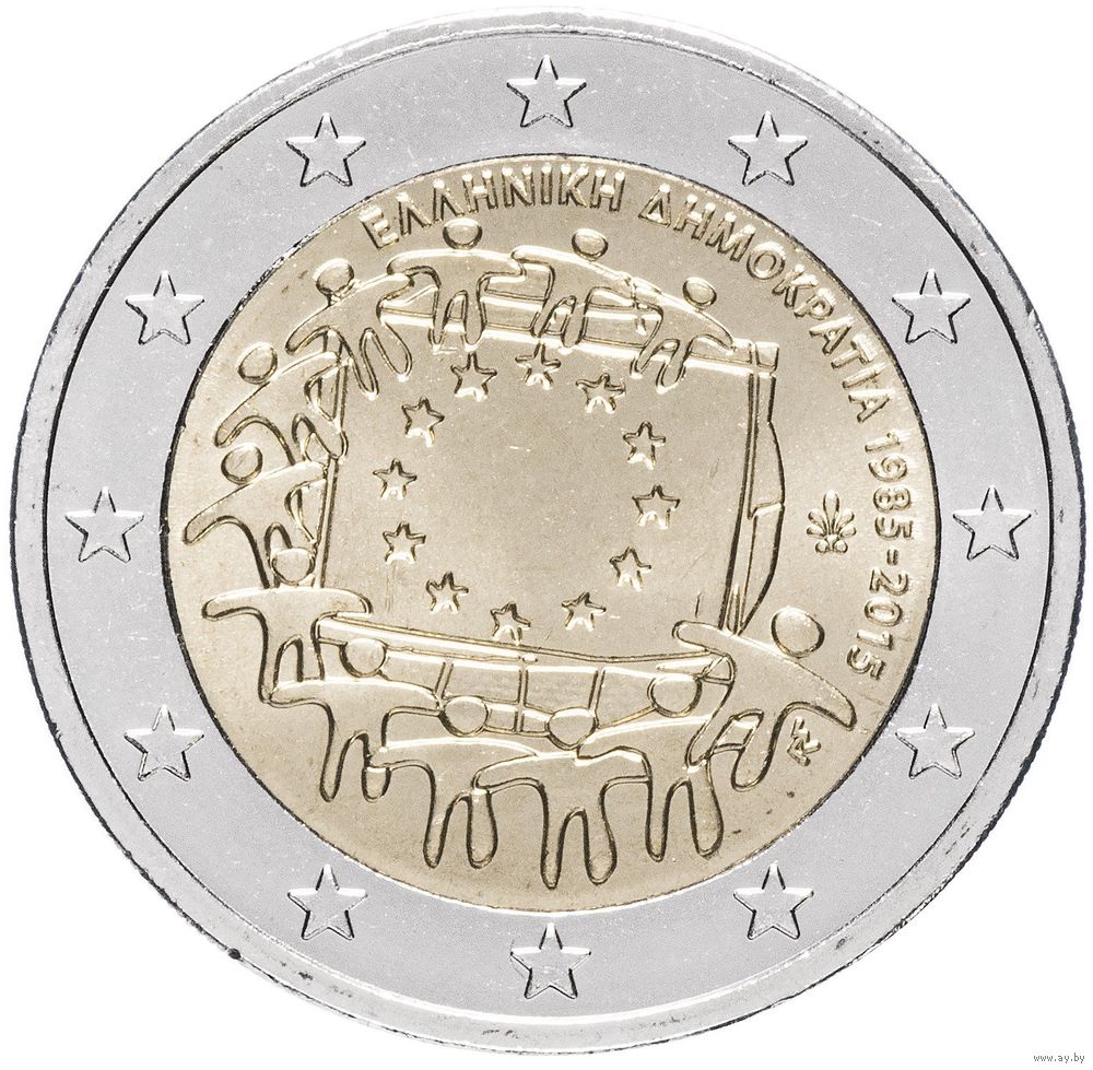 2 евро 2015 Греция 30 лет флагу UNC из ролла