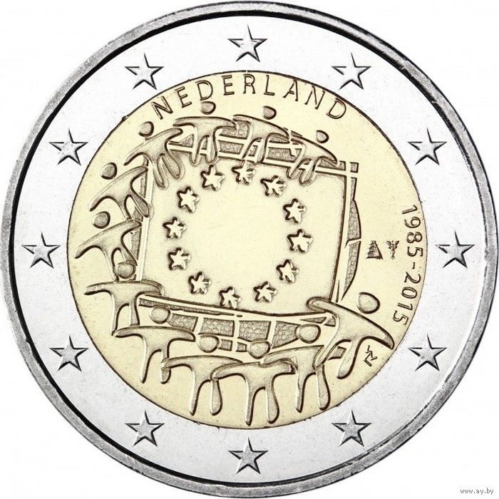 2 евро 2015 Нидерланды 30 лет флагу Европы UNC из ролла
