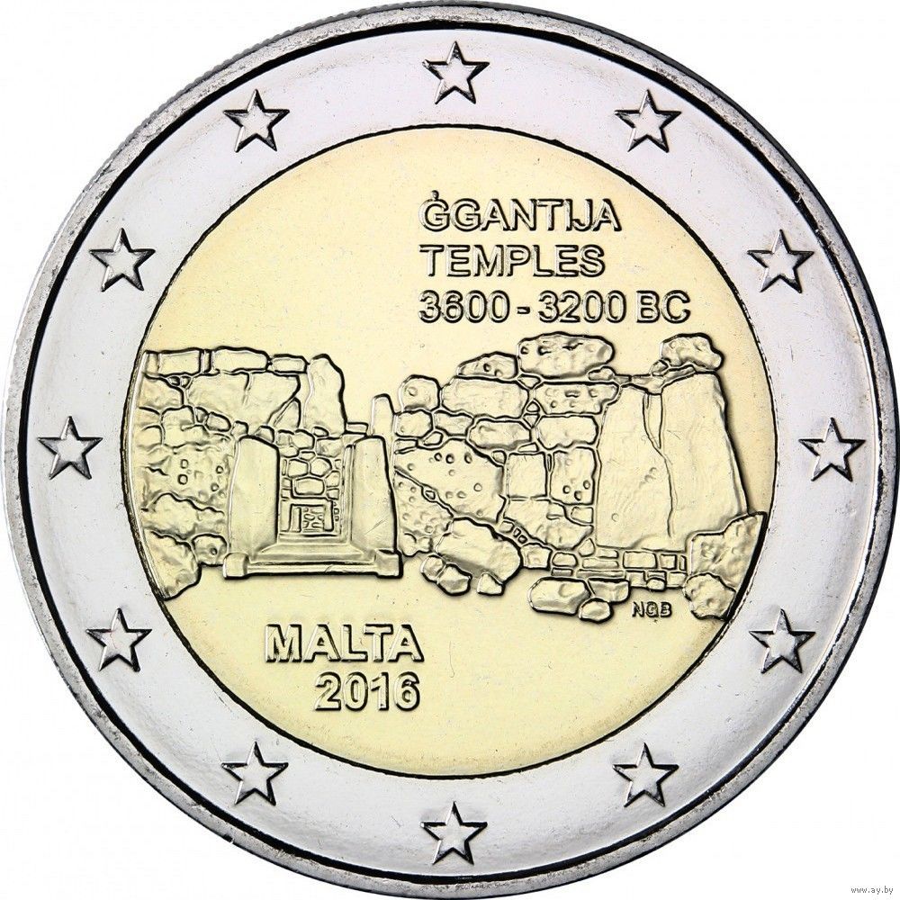 2 евро 2016 Мальта Храм Джгантия UNC из ролла