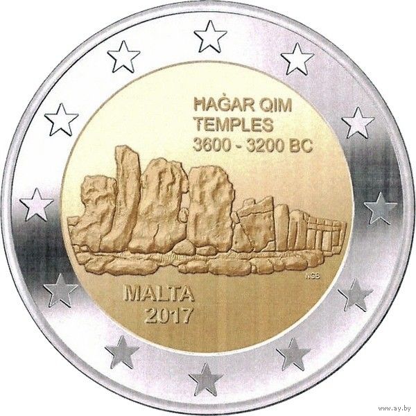 2 евро 2017 г. Мальта Мегалитический комплекс Хаджар-Ким. UNC из ролла