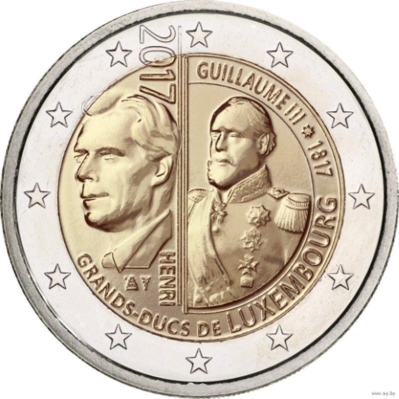 2 евро 2017 Люксембург 200 лет со дня рождения Великого герцога Виллема III UNC из ролла