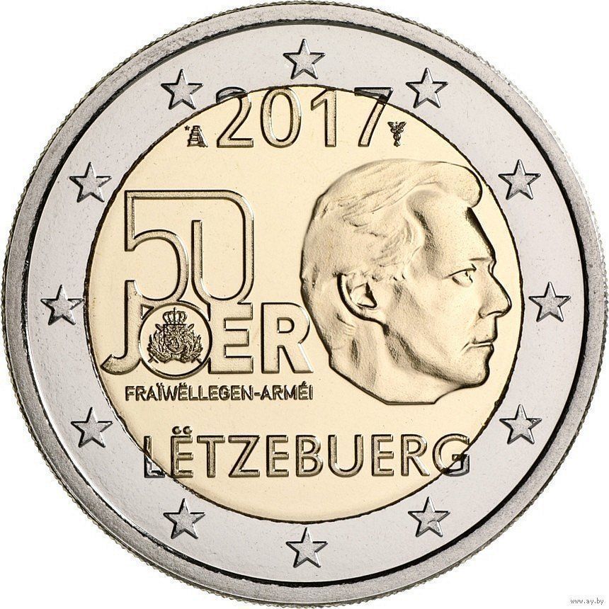 2 евро 2017 Люксембург 50 лет добровольной военной службы UNC из ролла