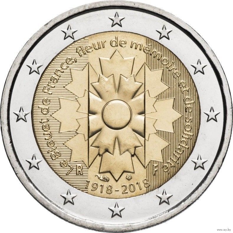 2 евро 2018 Франция Василёк UNC из ролла