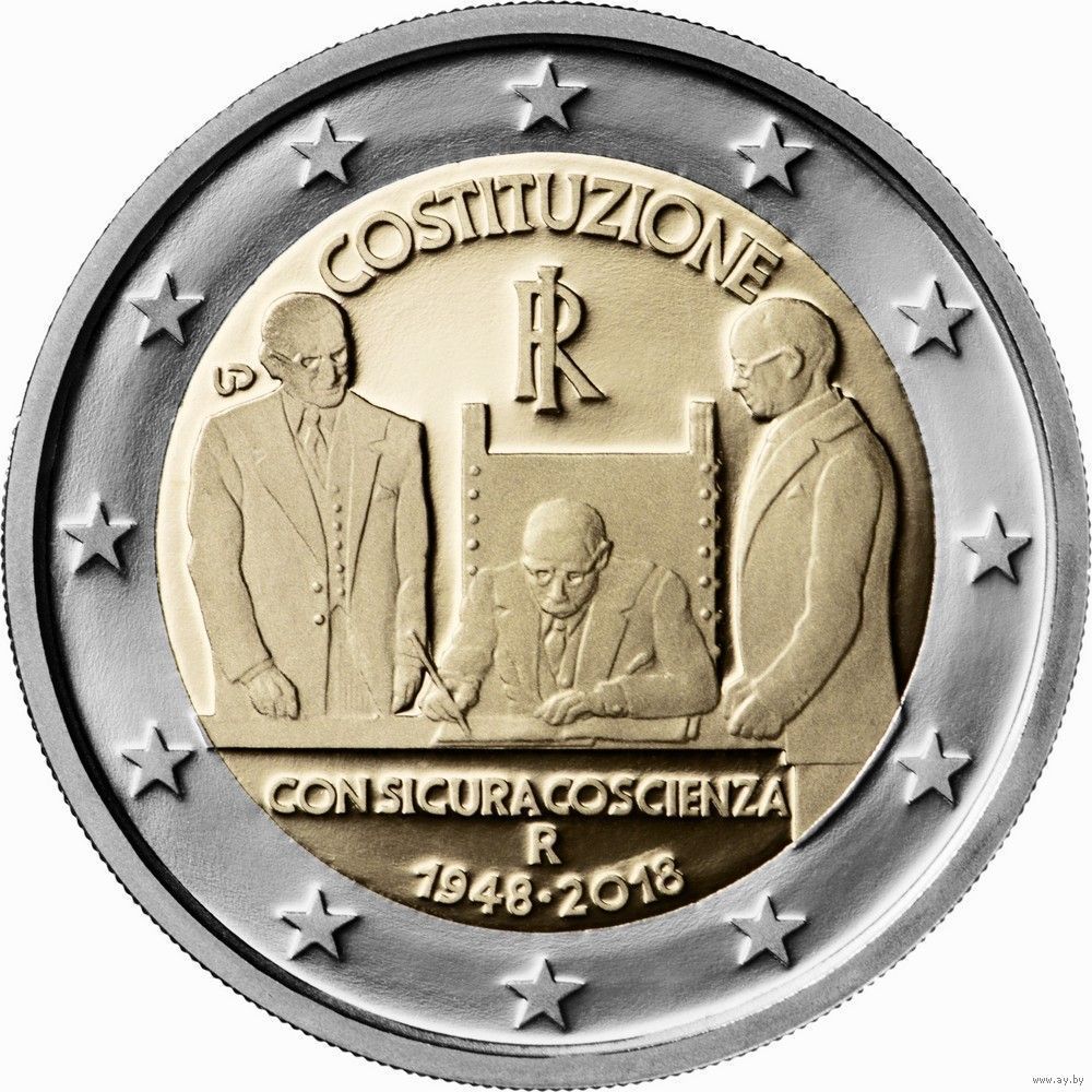 2 евро 2018 Италия 70 лет Конституции Италии UNC из ролла
