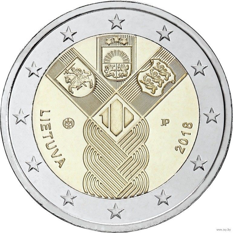 2 евро 2018 Литва 100 лет независимости государств Балтики UNC из ролла