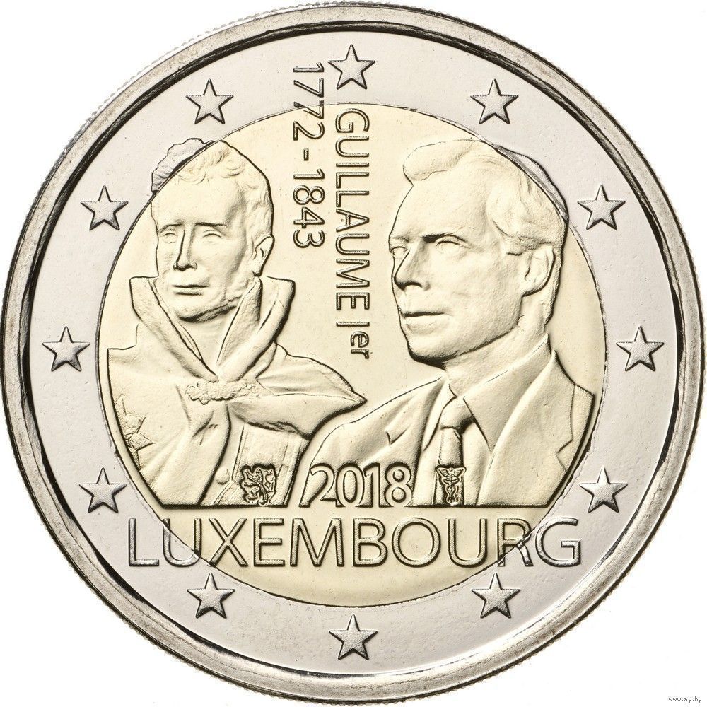 2 евро 2018 Люксембург 175 лет со дня смерти Гийома I UNC из ролла
