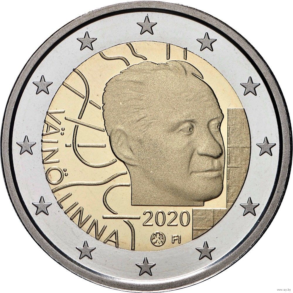 2 евро 2020 Финляндия 100 лет со дня рождения Вяйнё Линна UNC из ролла