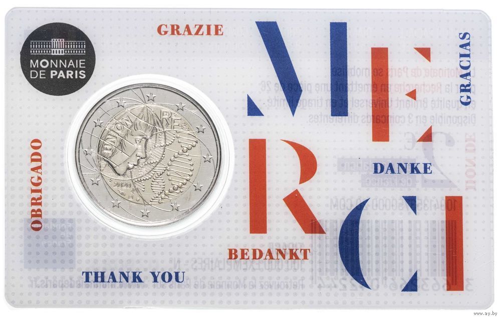 2 евро 2020 Франция Медицинские исследования. Ковид UNC MERCI блистер BU