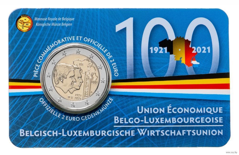 2 евро 2021 Бельгия 100 лет Бельгийско-Люксембургскому экономическому союзу блистер BU