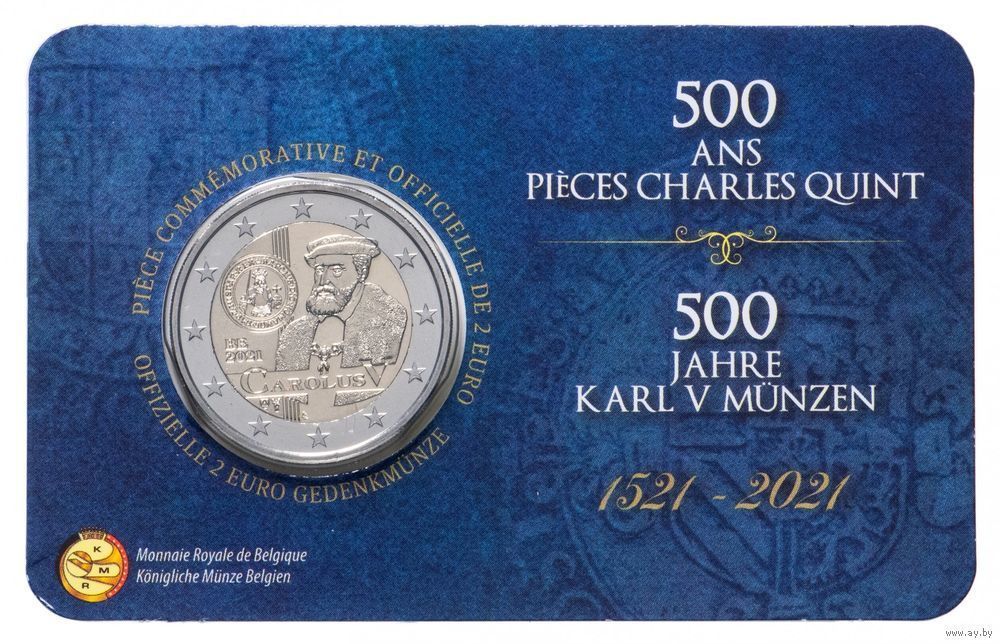 2 евро 2021 Бельгия 500 лет выпуска монет Карла V блистер BU
