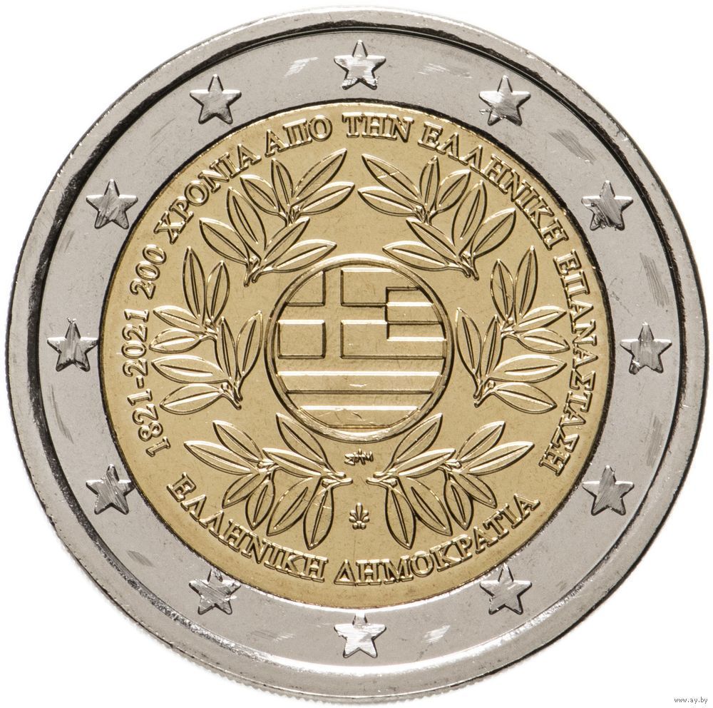 2 евро 2021 Греция 200 лет Революции UNC из ролла
