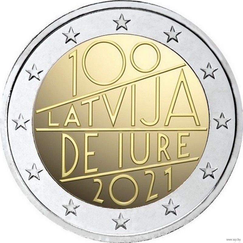 2 евро 2021 Латвия 100 лет признания де юре UNC из ролла