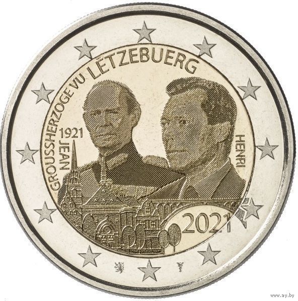 2 евро 2021 Люксембург 100 лет со дня рождения Великого Герцога UNC из ролла фото