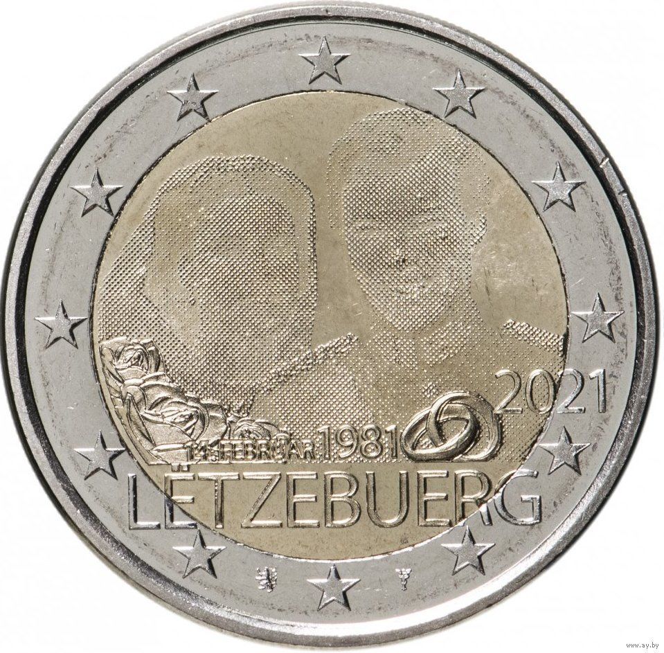 2 евро 2021 Люксембург 40 лет бракосочетанию Великого Герцога UNC из ролла фото