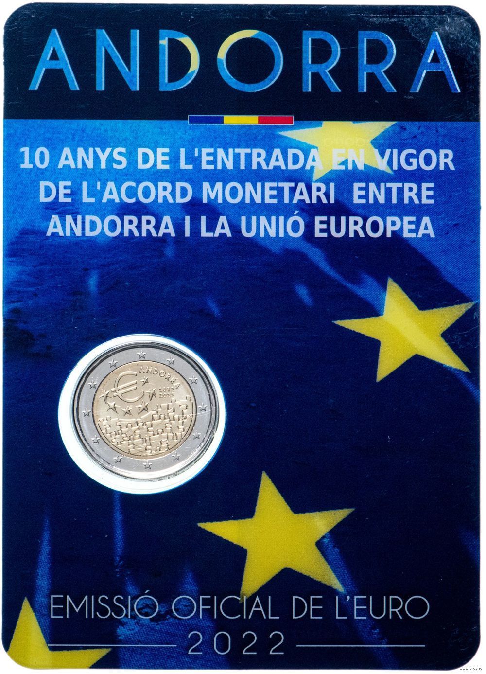 2 евро 2022 Андорра 10 лет Денежно-Кредитного соглашения между Андоррой и ЕС BU