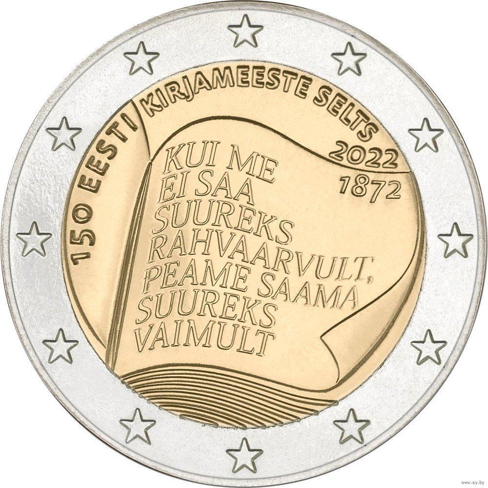 2 евро 2022 Эстония 150 лет литературному обществу UNC из ролла