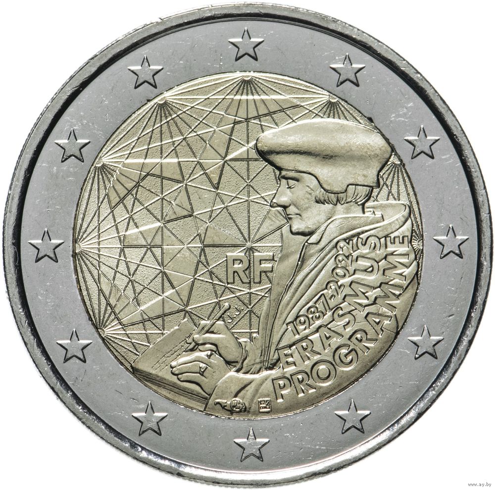 2 евро 2022 Франция 35 лет программы Erasmus UNC из ролла