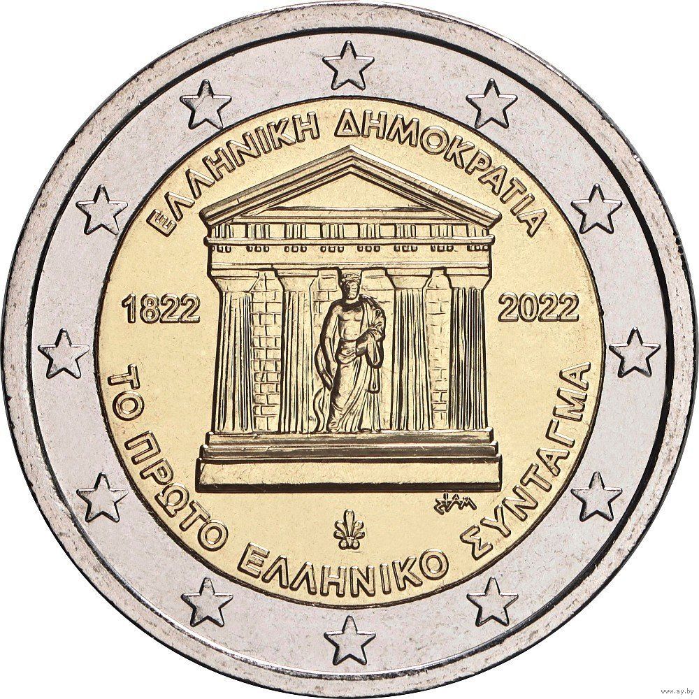 2 евро 2022 Греция 200 лет Конституции UNC из ролла