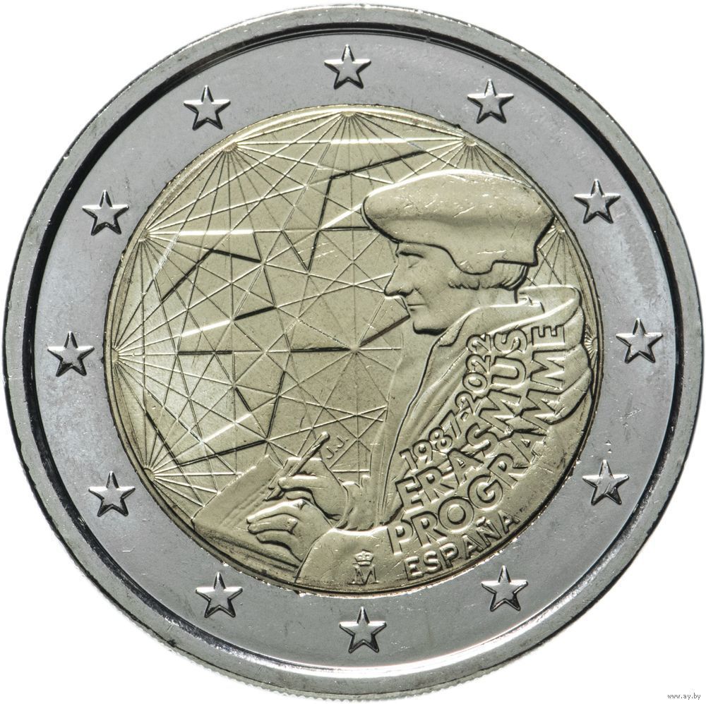 2 евро 2022 Испания 35 лет программы Erasmus UNC из ролла